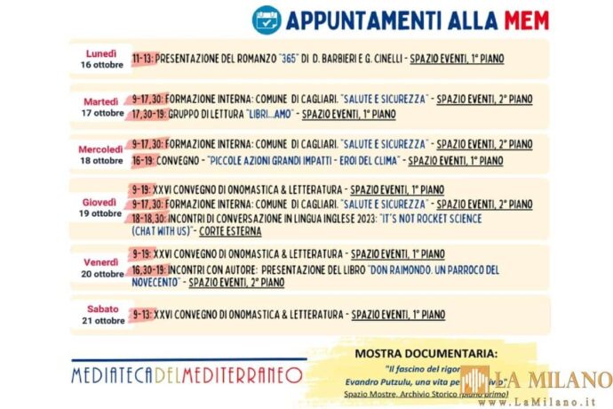 Cagliari, tutti appuntamenti alla MEM dal 16 al 21 ottobre 2023. #MEM #eventi #cagliari #sardegna …CONTINUA A LEGGERE