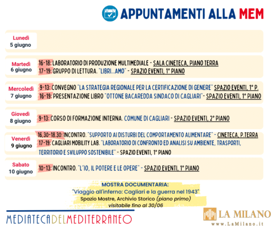 Cagliari: I nuovi appuntamenti alla MEM per la settimana dal 5 all’11 giugno