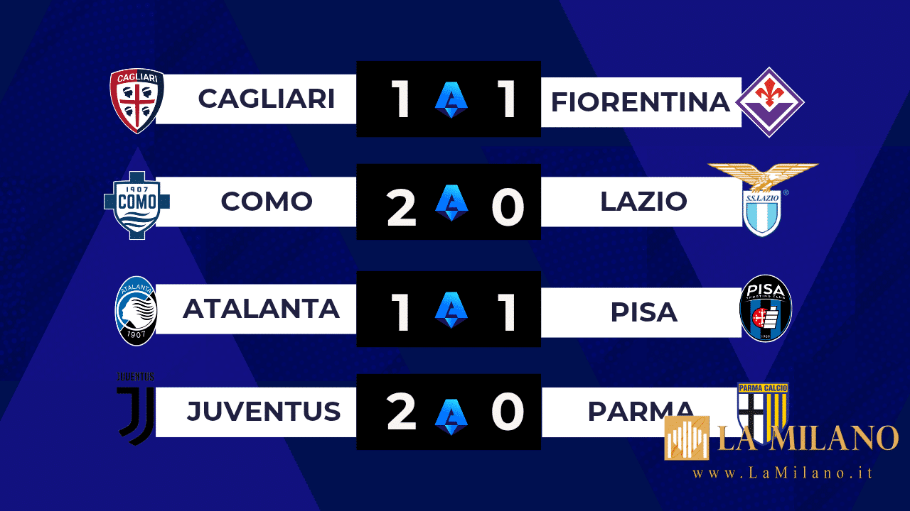 La prima giornata di Serie A prosegue e continuano anche le sorprese. Il Cagliari strappa un pareggio all’ultimo minuto contro la Fiorentina, mentre il Como trascinato da Nico Paz batte la Lazio per 2-0. L’avventura del Pisa inizia con un clamoroso pareggio sul campo dell’Atalanta. Arriva invece una vittoria per la Juventus contro il Parma, decisive le reti di David e Vlahovic.